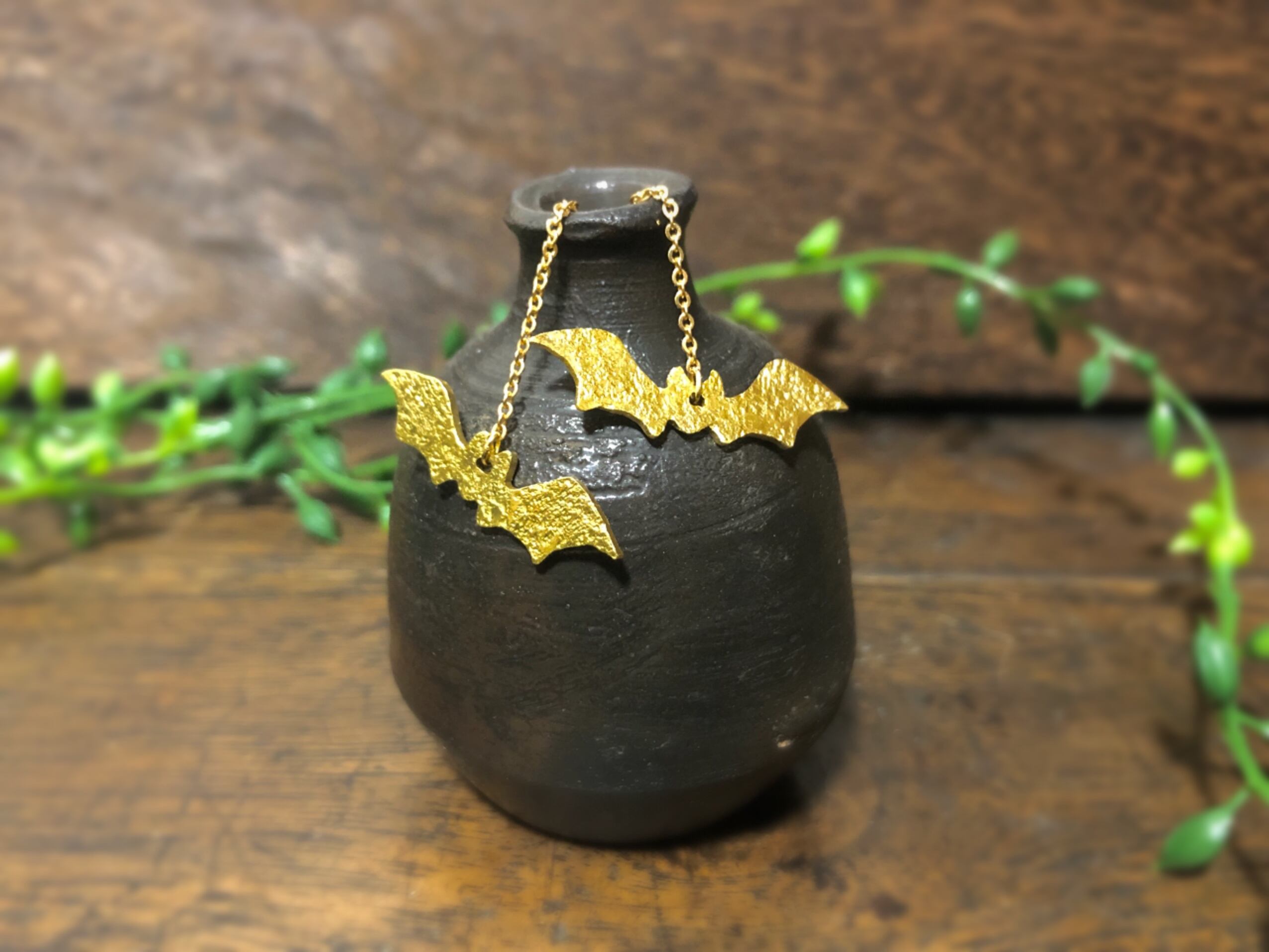 真鍮製コウモリのピアスです。