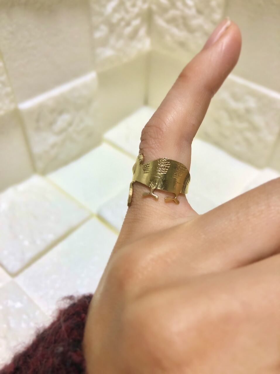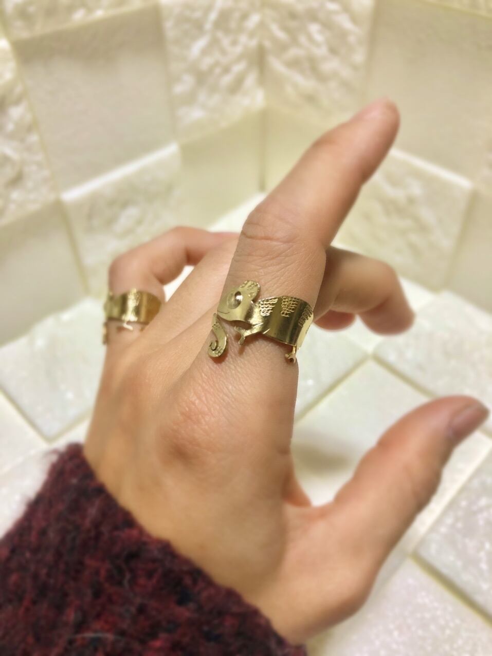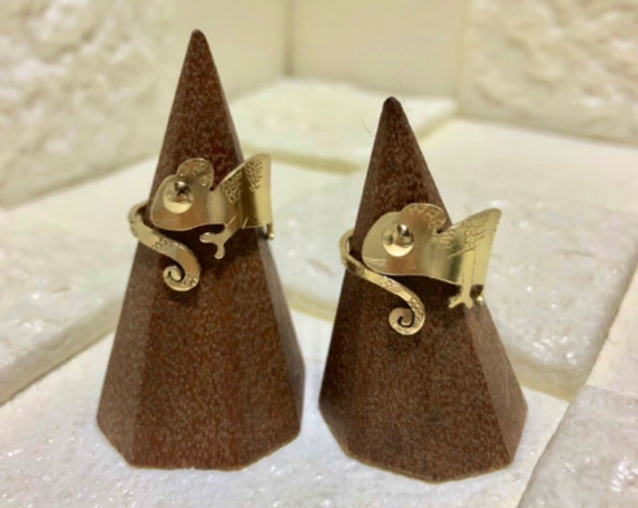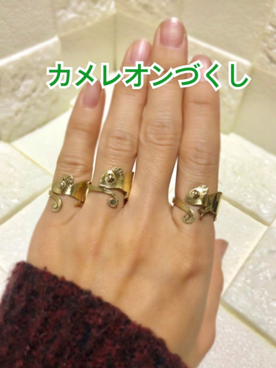 オメメがくりっと盛り上がり、お茶目な顔をした可愛いカメレオン坊やのリングです