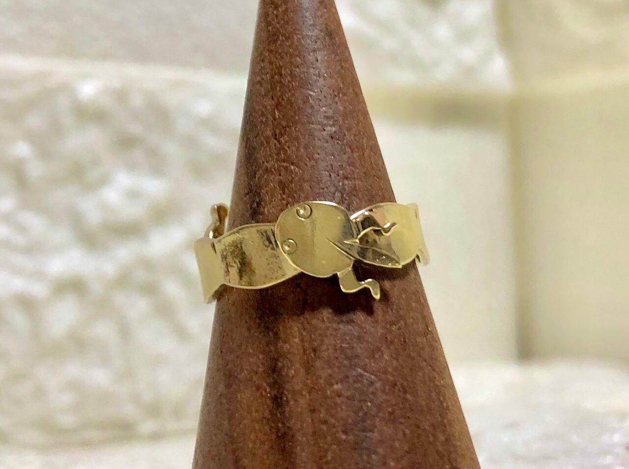 カエルのおててを前に持ってきても、おたまじゃくしちゃんを前にしても、どちらでも可愛いリングです