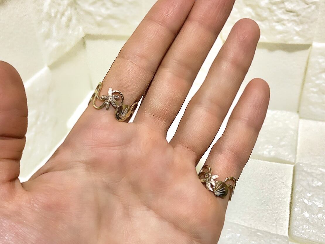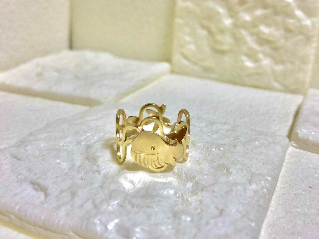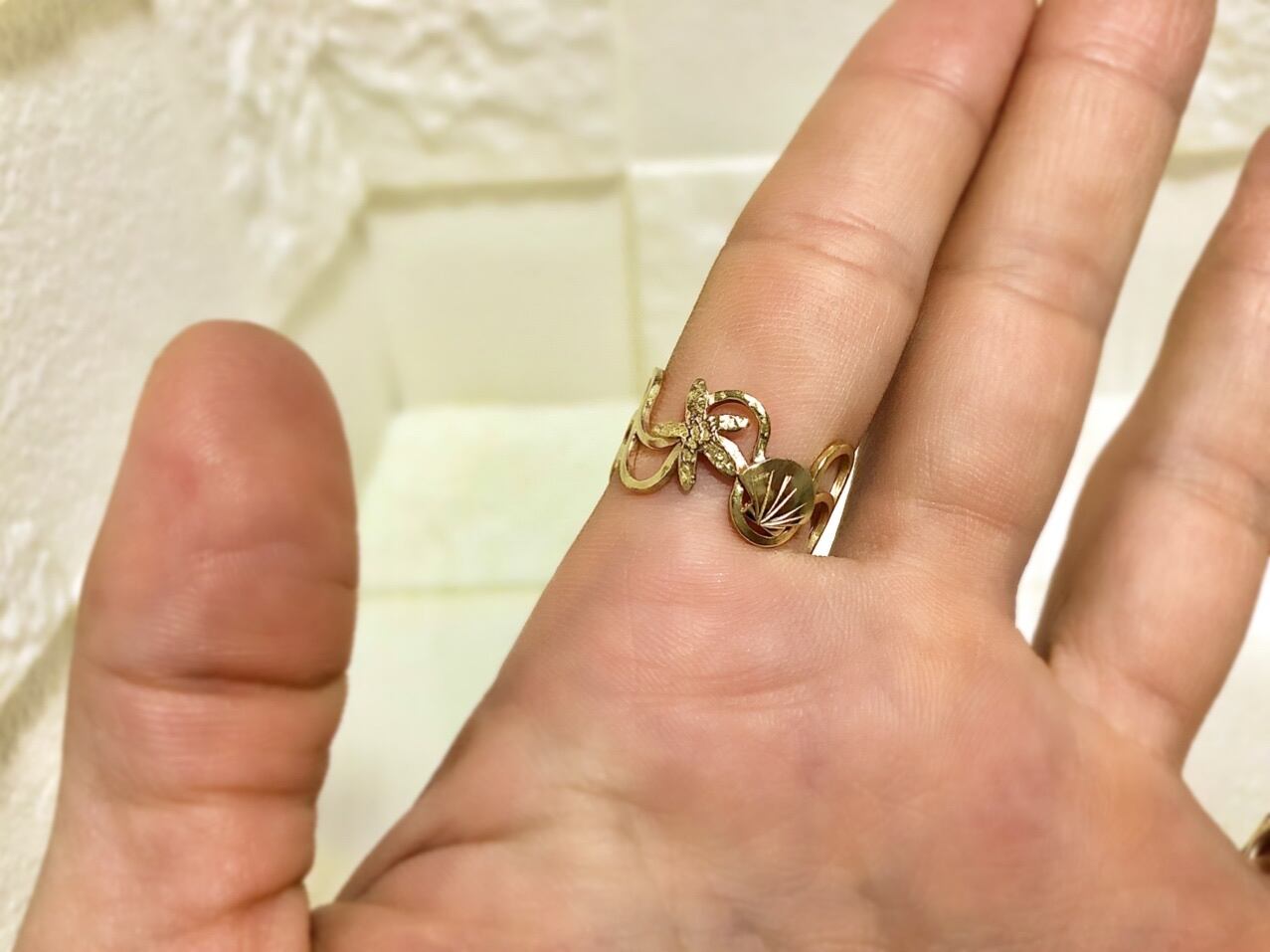 ・くじらさんと貝殻はタガネで模様を付け、ヒトデは細かな槌目を付け、波の形にしたリングとロウ付けしています。