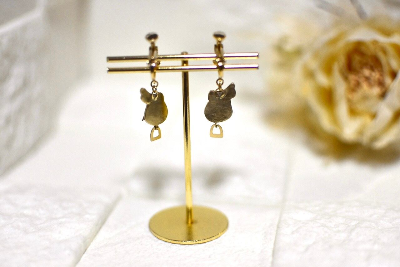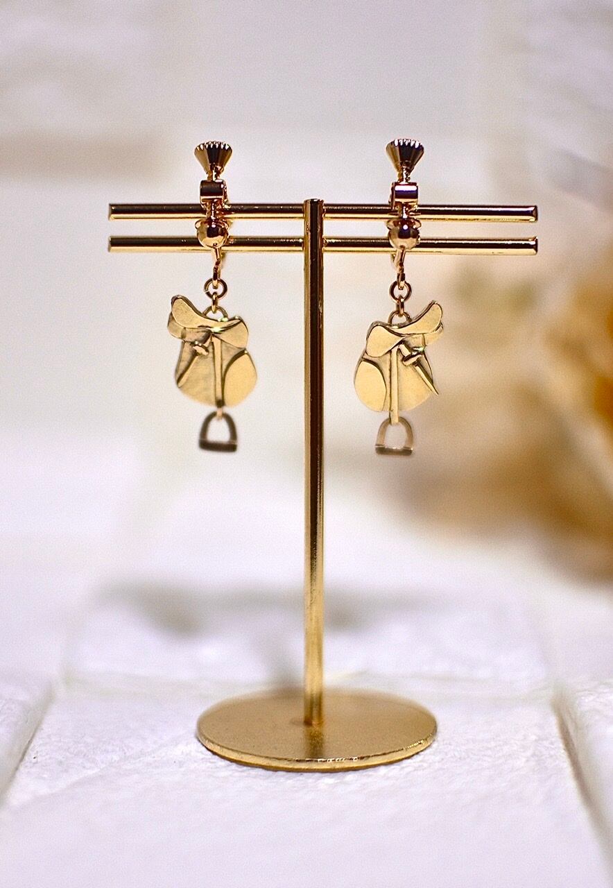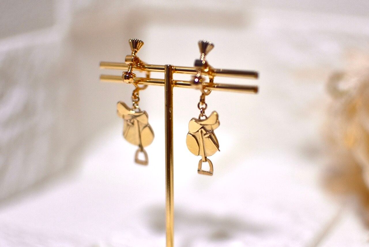 真鍮製の乗馬用の鞍モチーフのイヤリングです