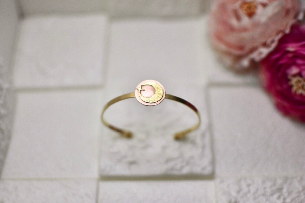月とバングルは真鍮製、月の丸い土台は銅製です