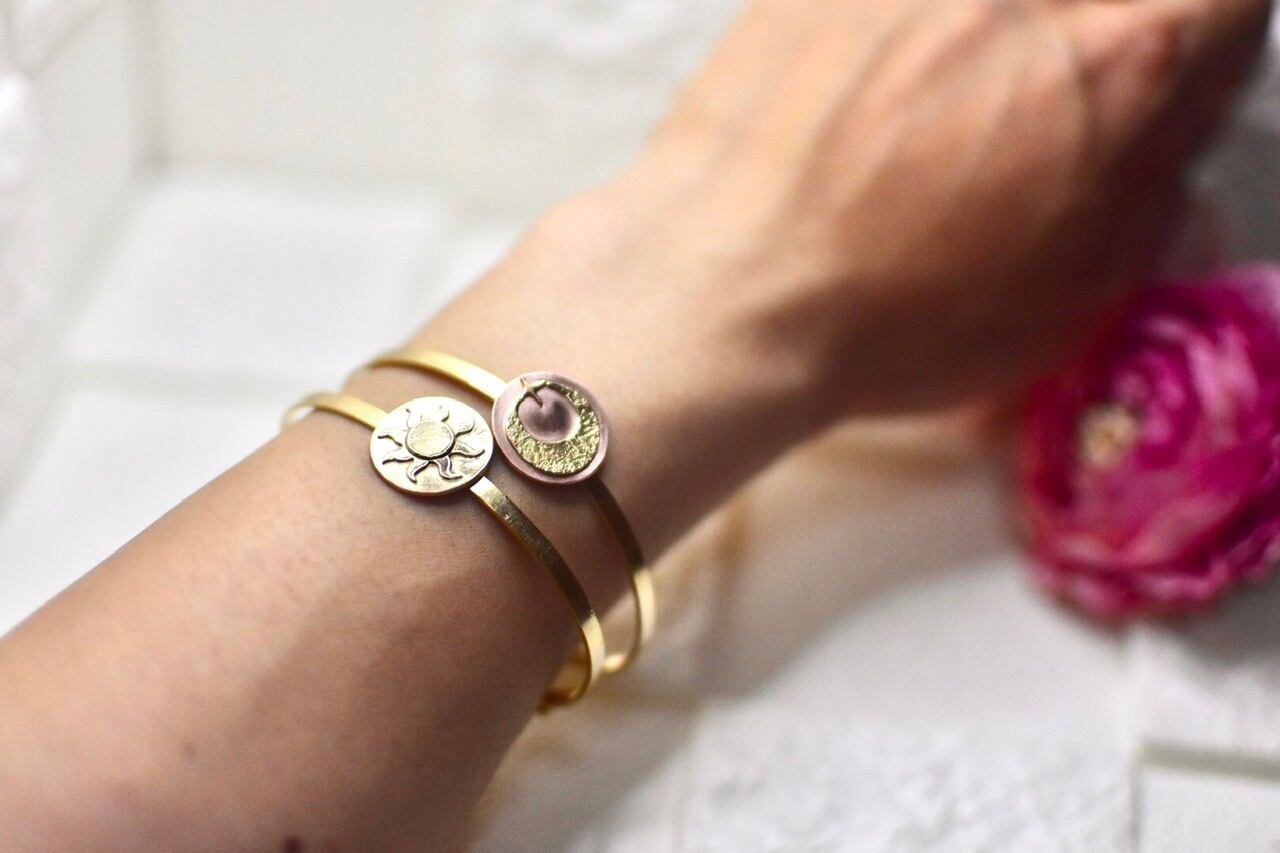 真鍮製の太陽モチーフのバングル、SUN&MOONの2タイプのうち MOONの方です