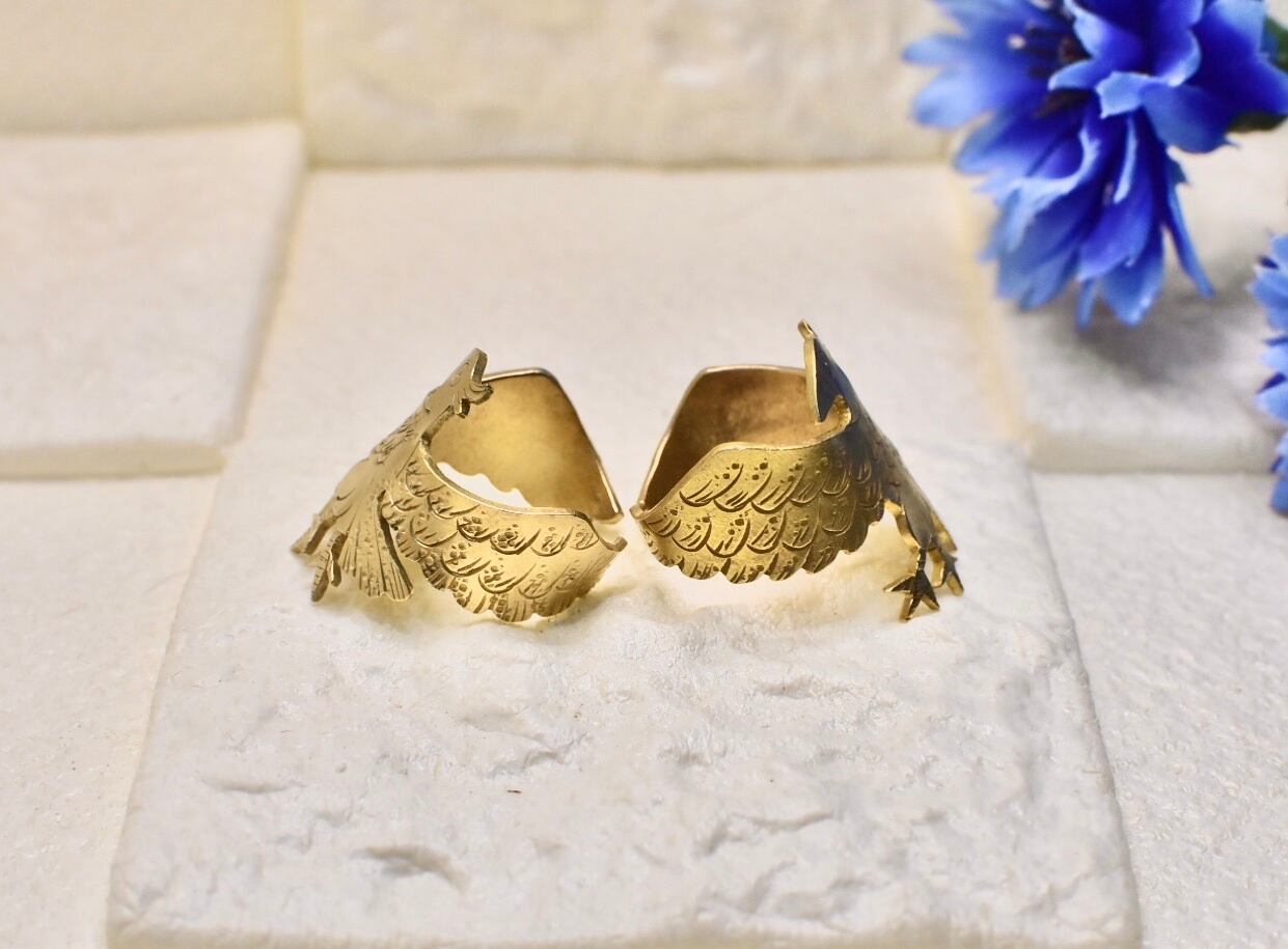 翼の羽根模様は細かくひとつひとつ手打ちで刻印しており、とても綺麗で存在感があります(手打ちで制作する都合上 同じ模様にはならないことをご了承ください)