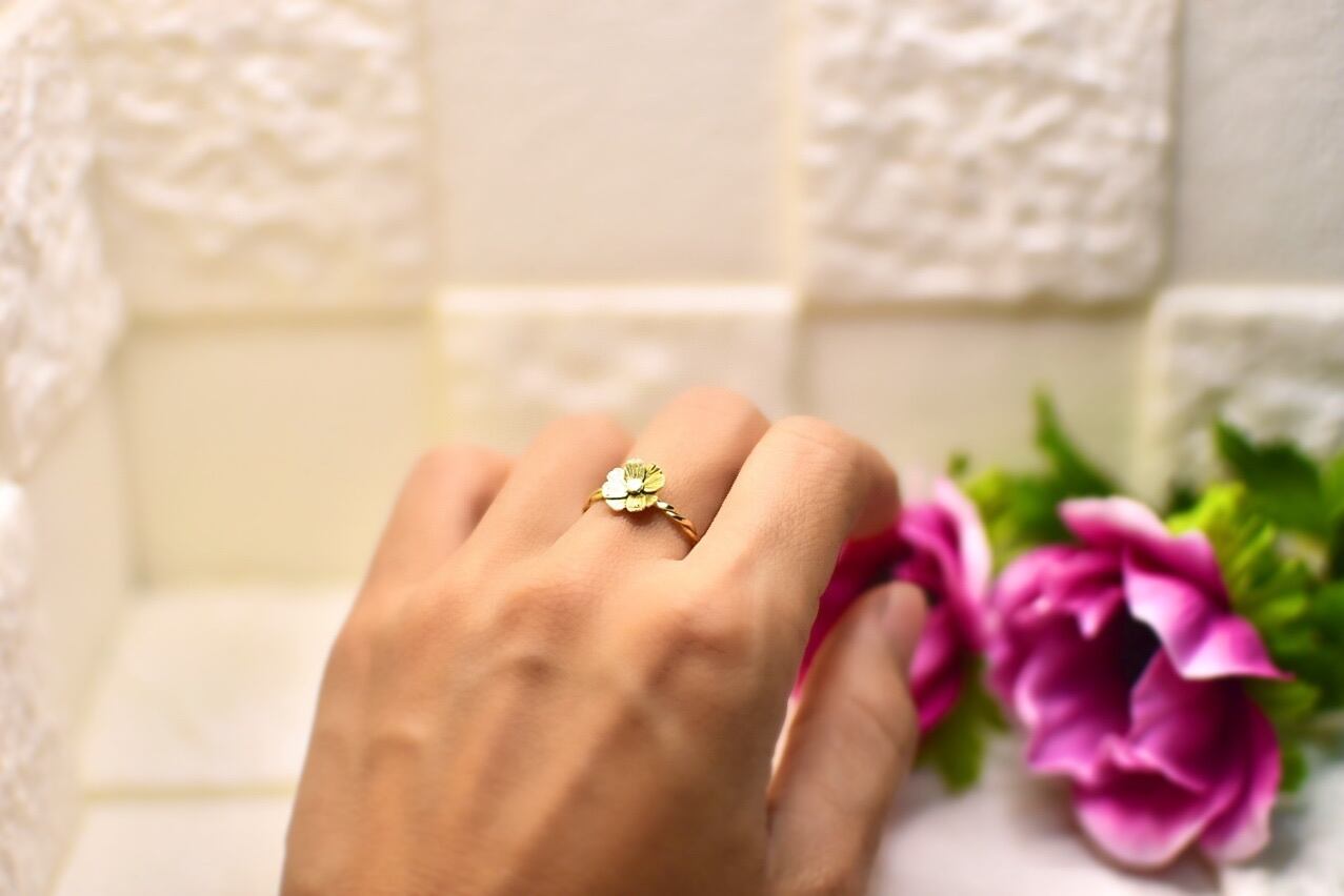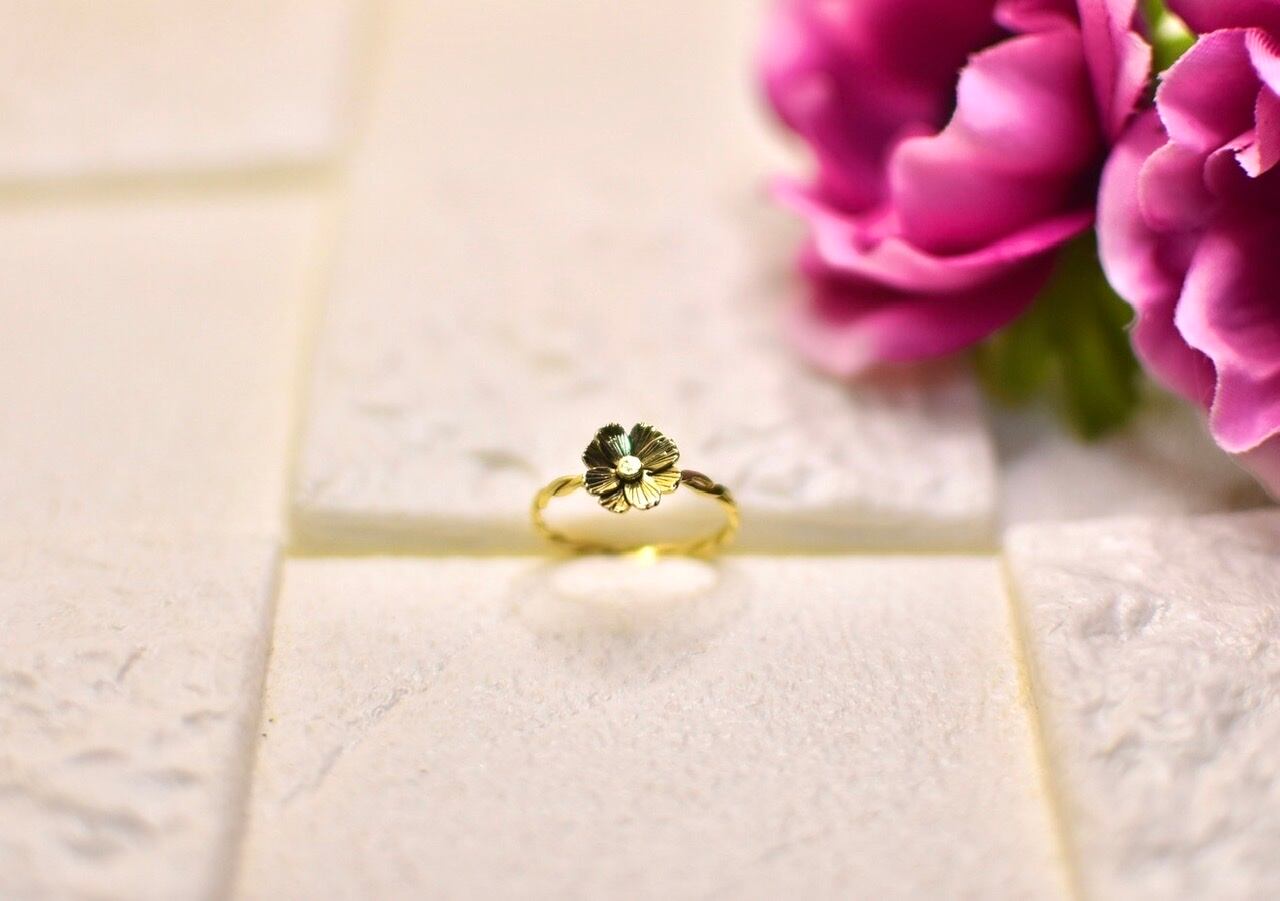 もう一つのコスモスリング《3flower》とはまたタイプが変わり、1つのお花がワンポイント
