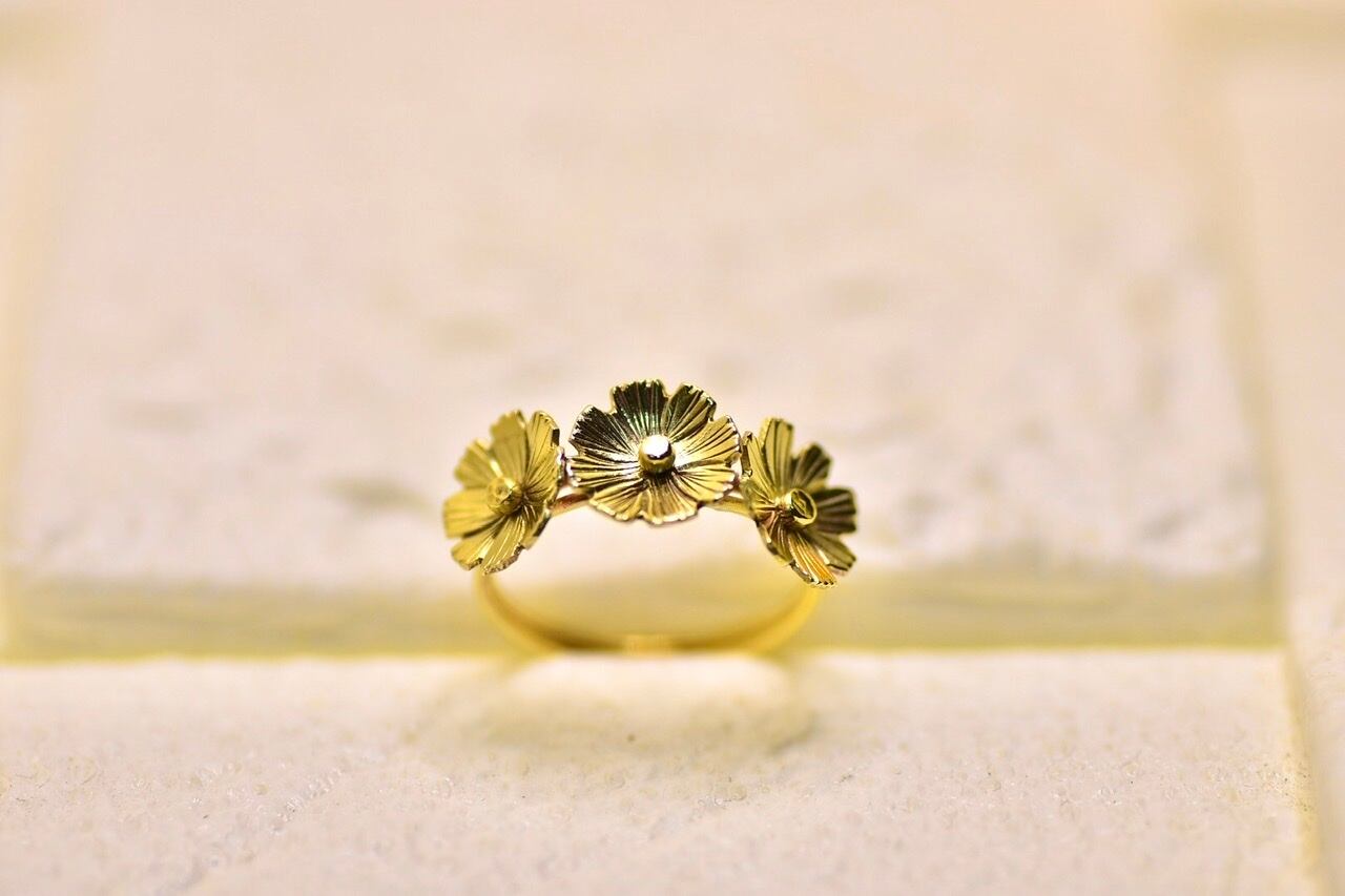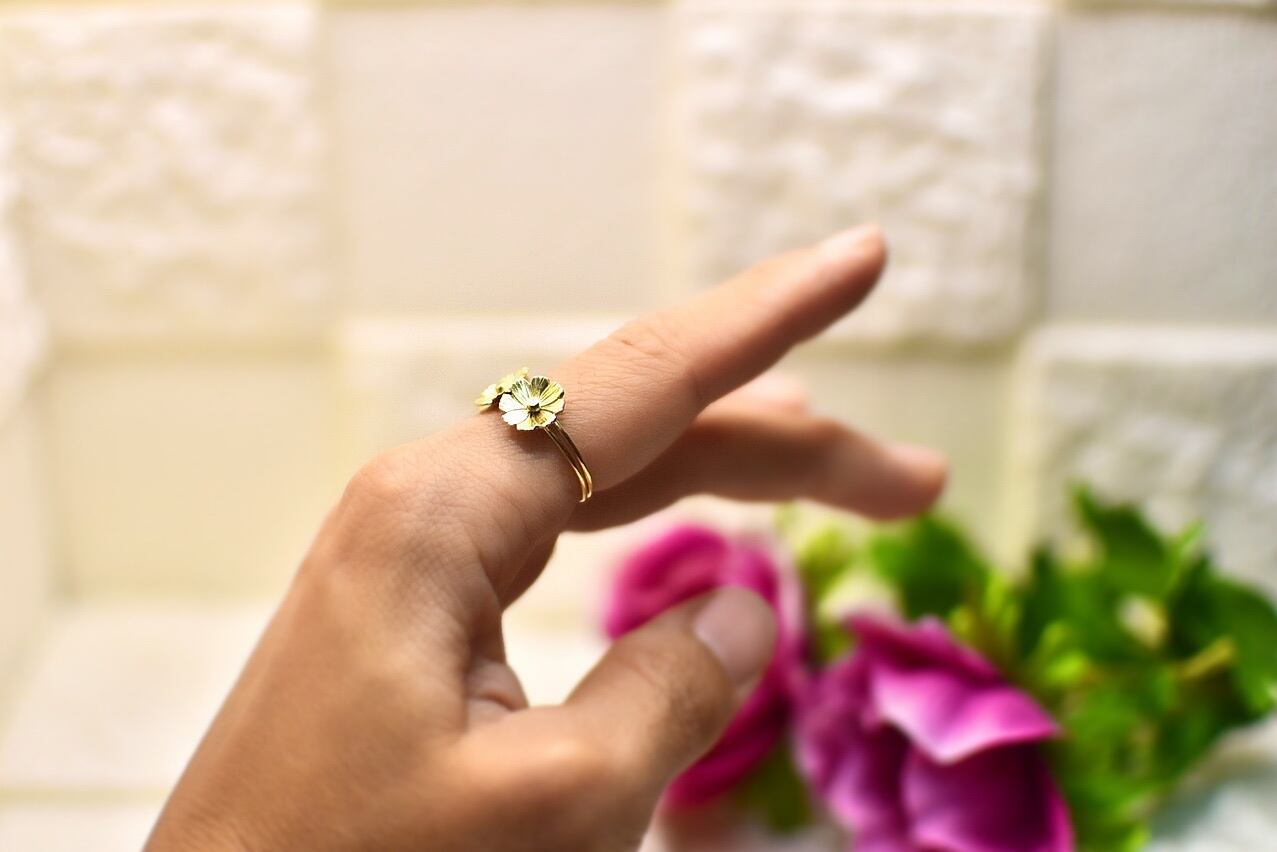 風に揺れるコスモスを摘み手元に添えたように、軽やかで華奢なリングです