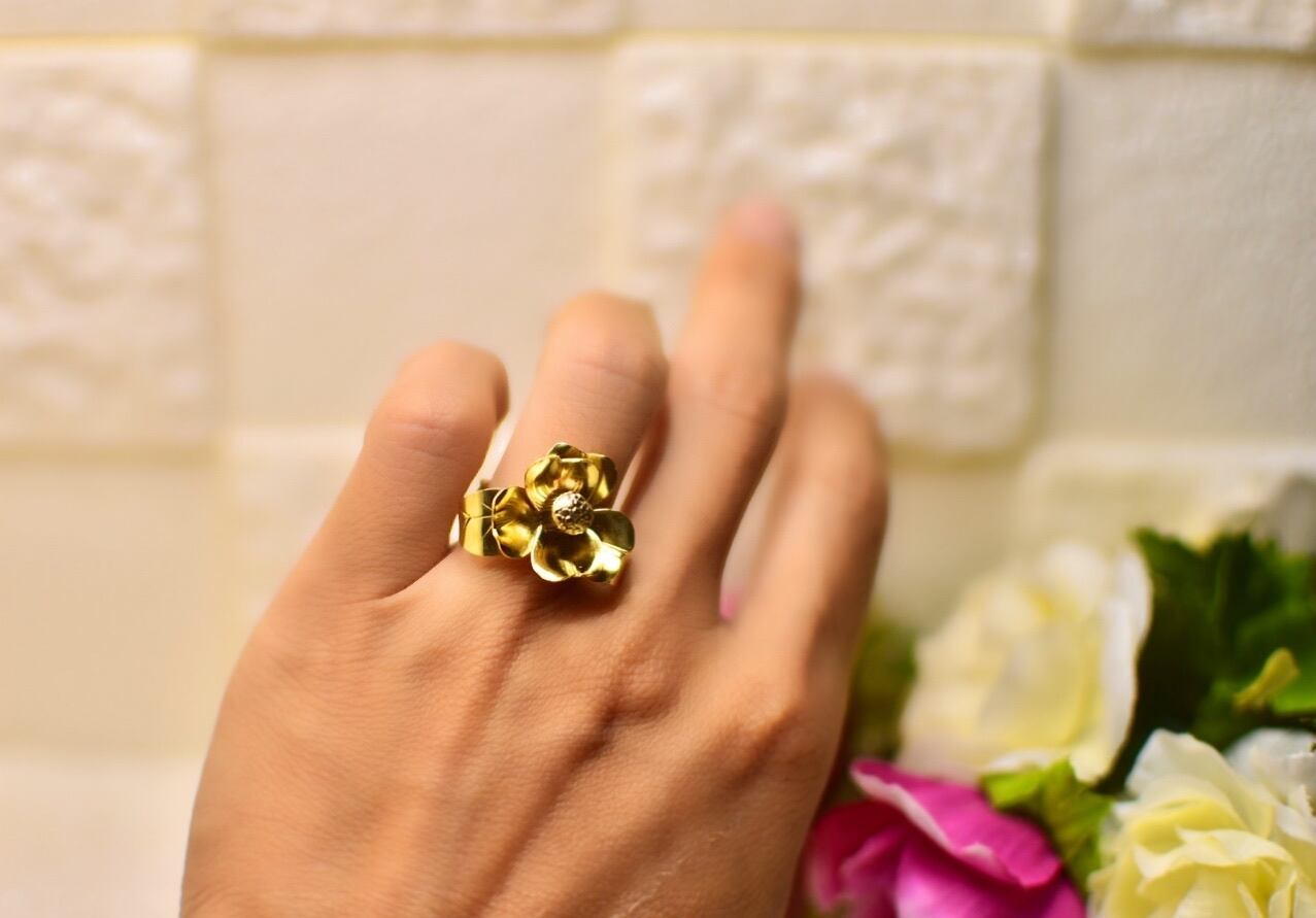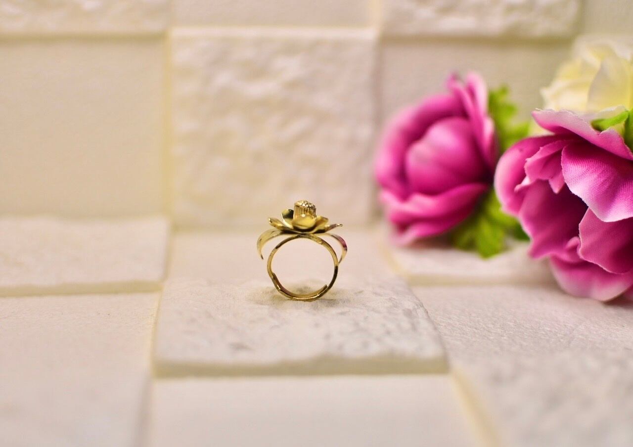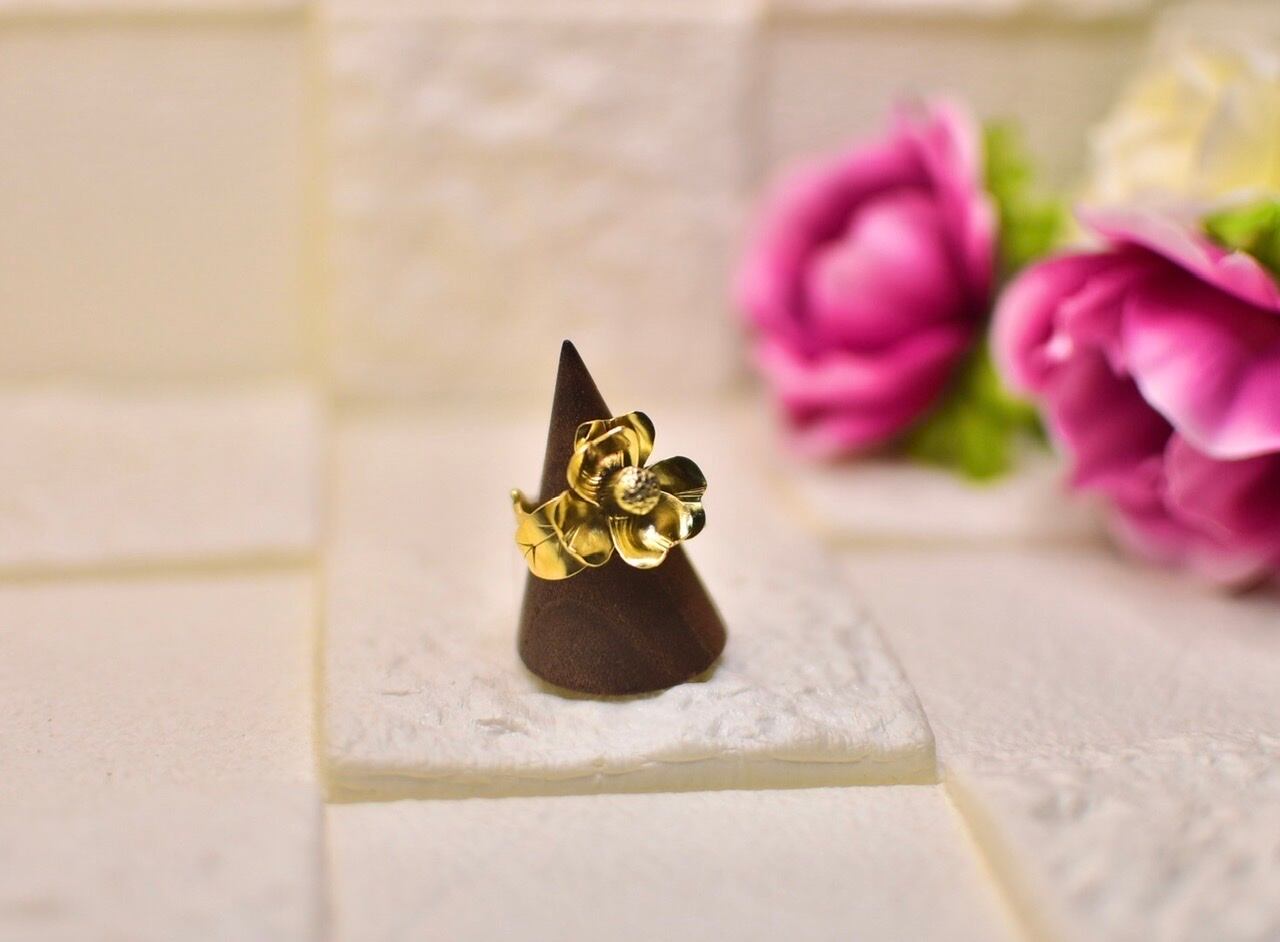 椿は私自身がとても好きな花で、椿のブローチを作り愛用していたのですが「これはリングにしても可愛いはず…!」と思い制作しました