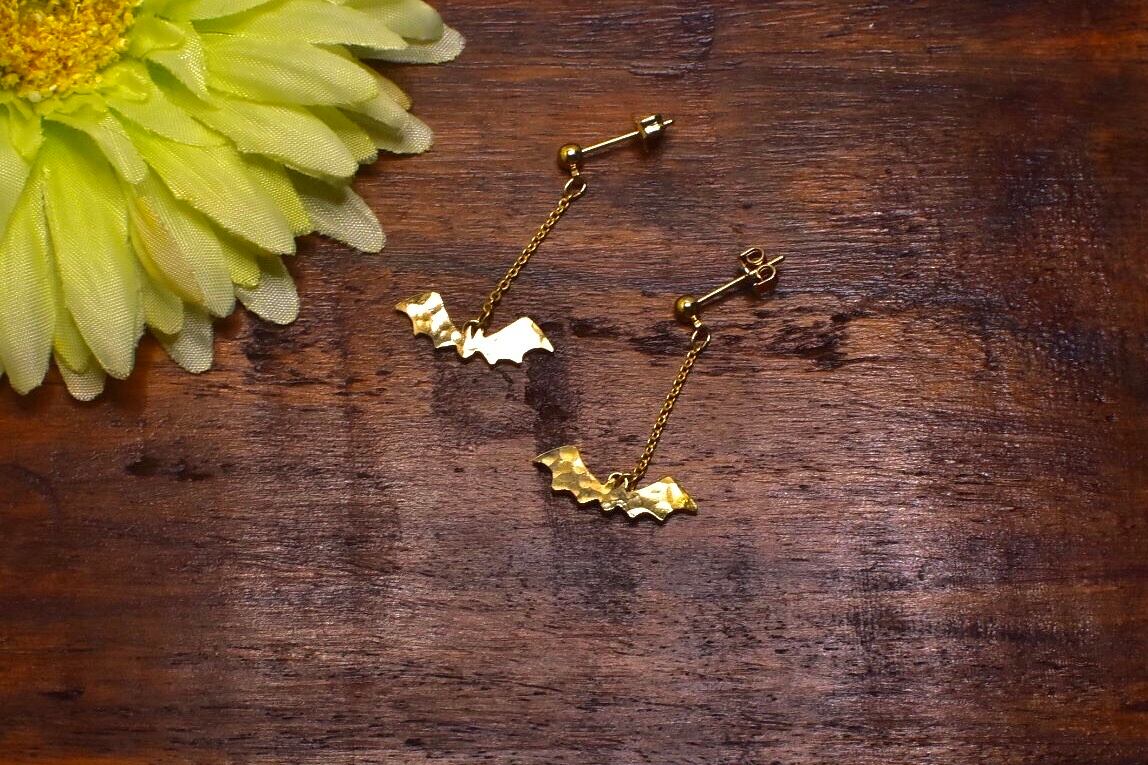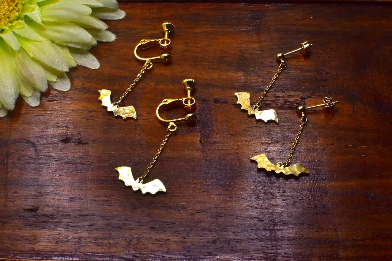 真鍮製のコウモリさんのピアスです。