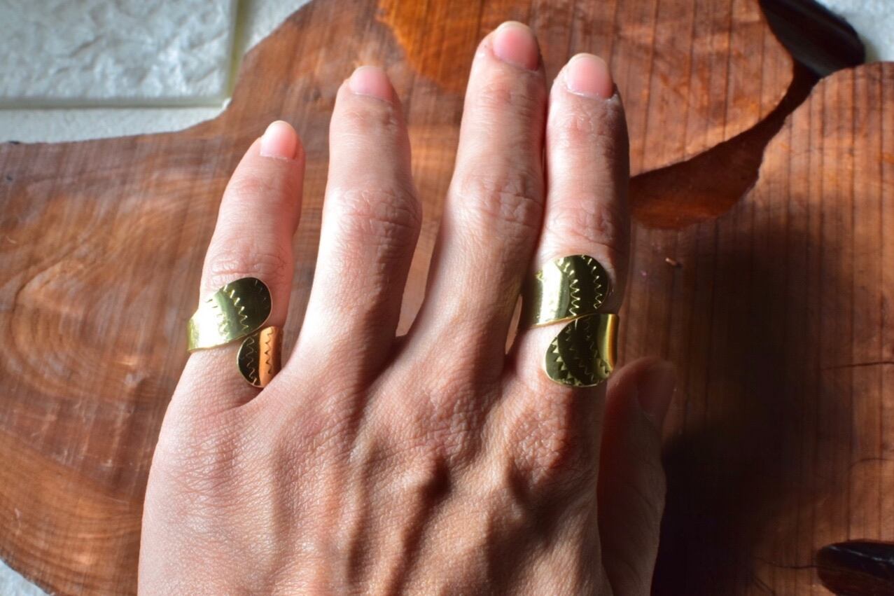 こちらのたぬたぬのしっぽリングは、襟巻きのように指にぐるっと巻きついているデザイン。