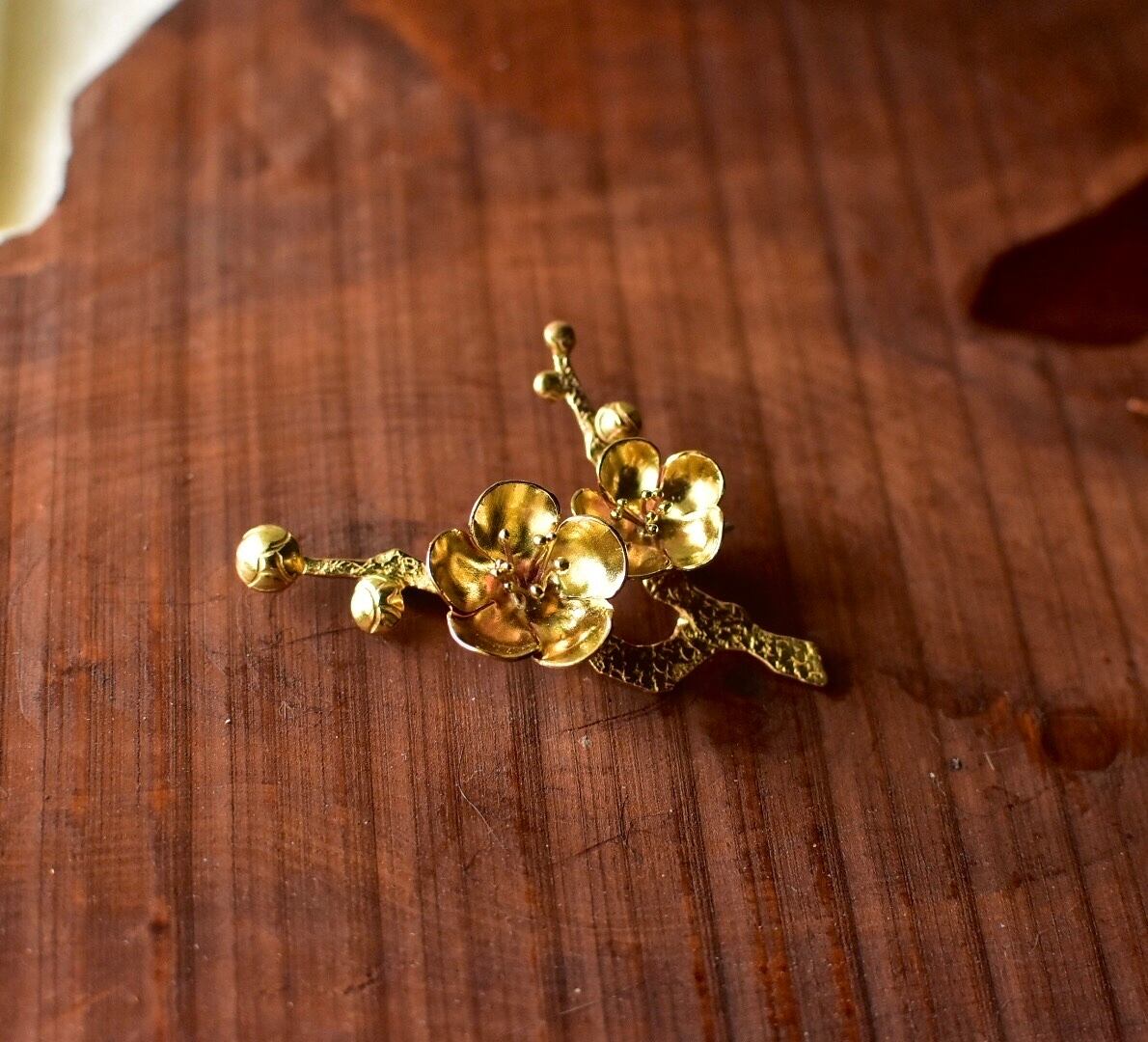 梅の特徴でもある飛び出たシベがとても華やかです。花の裏面にはぷっくりとしたガクも付いており、表だけではなく裏から見てもとても可愛い作品です。