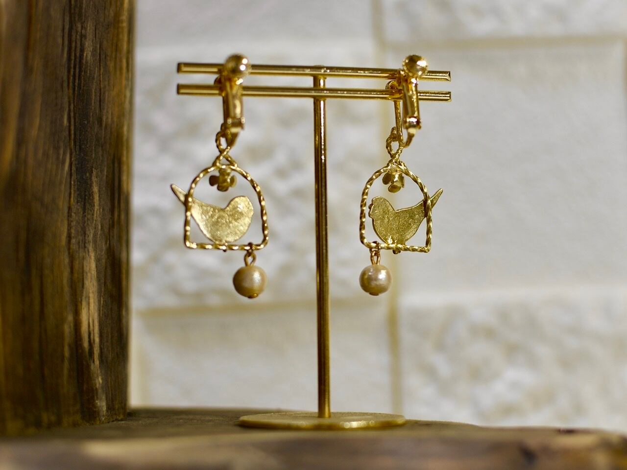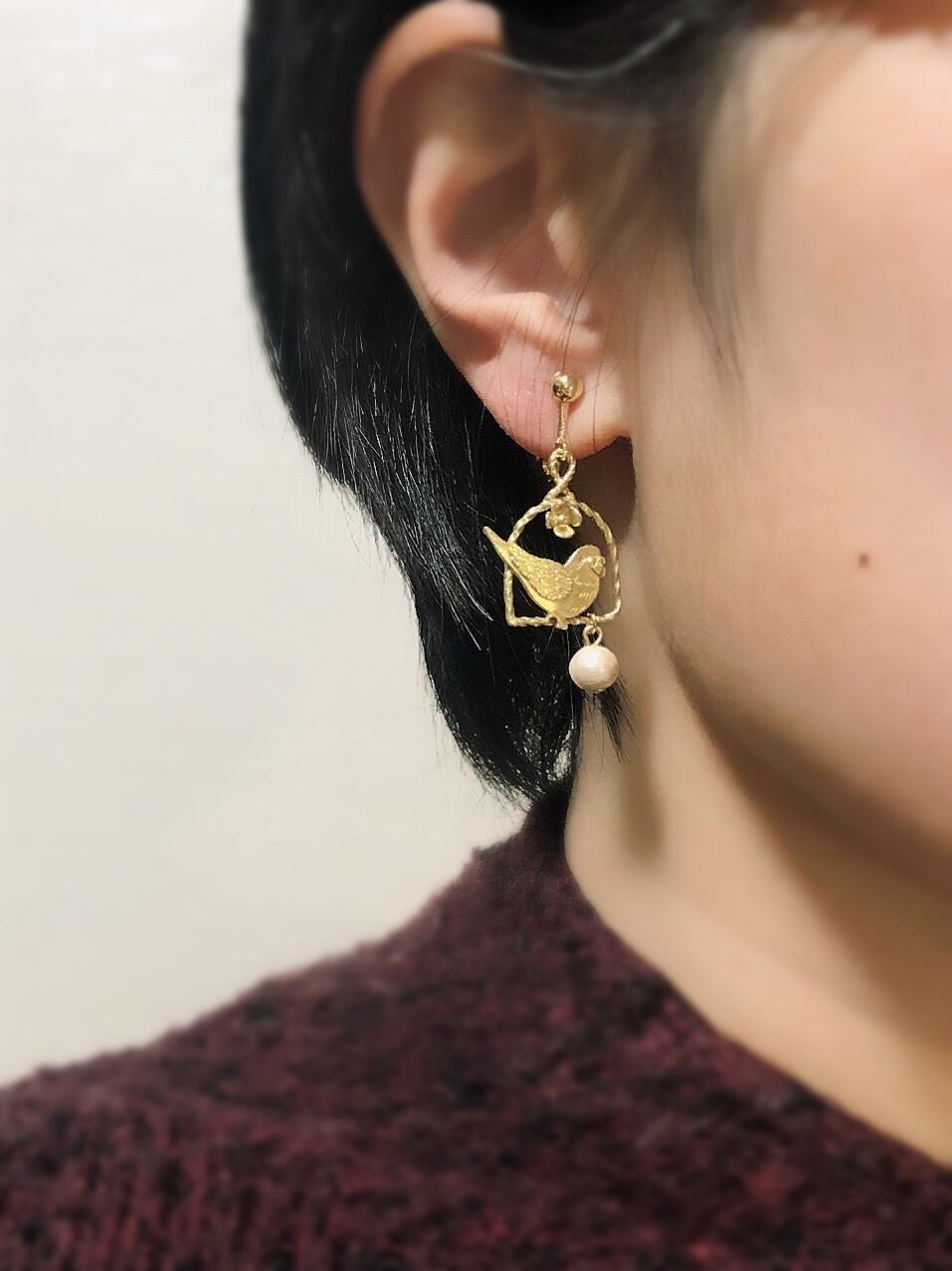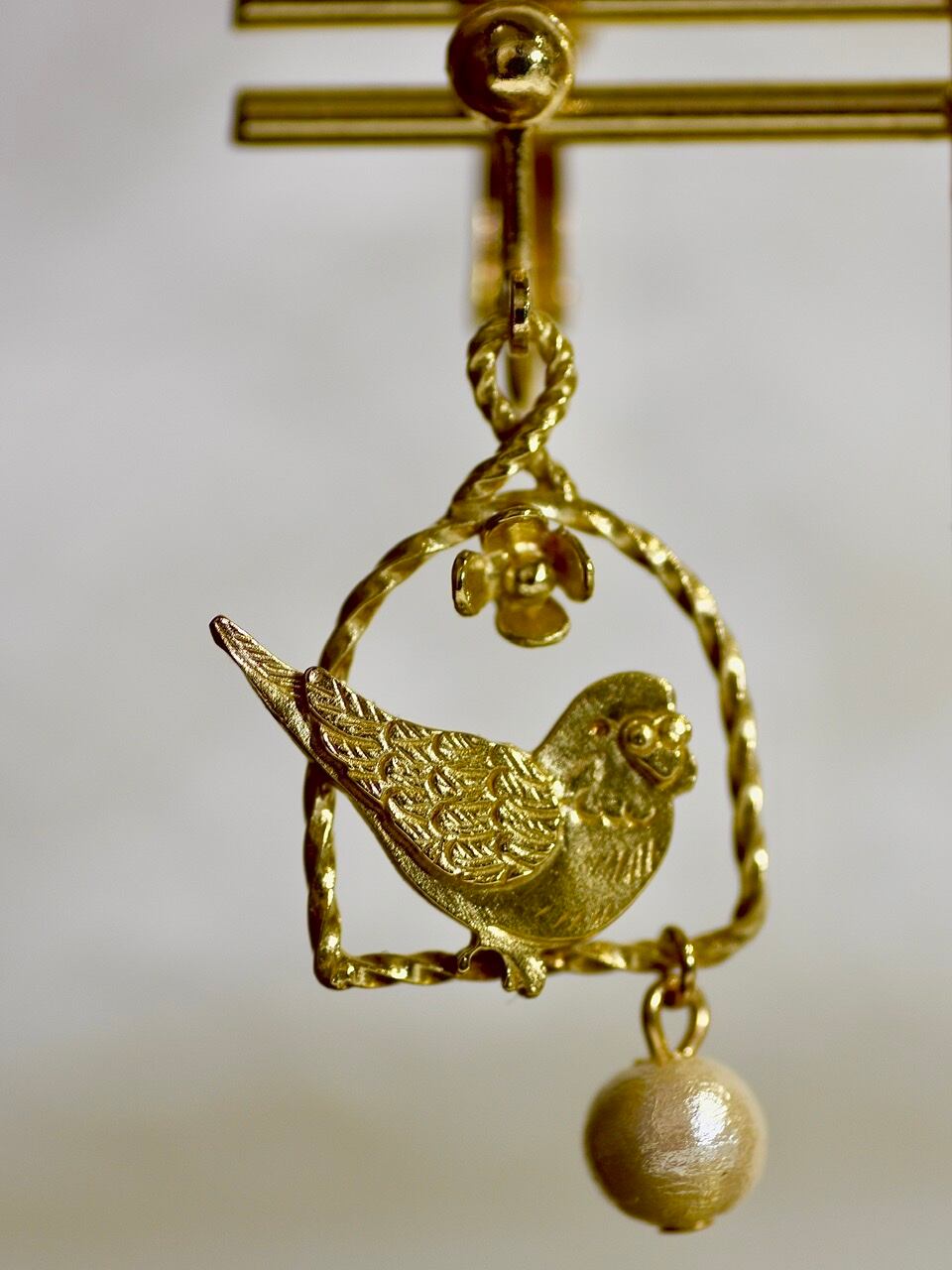 真鍮製のセキセイインコがモチーフとなっているイヤリングです。
