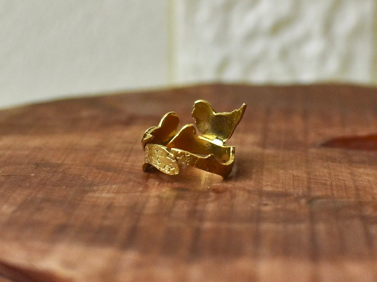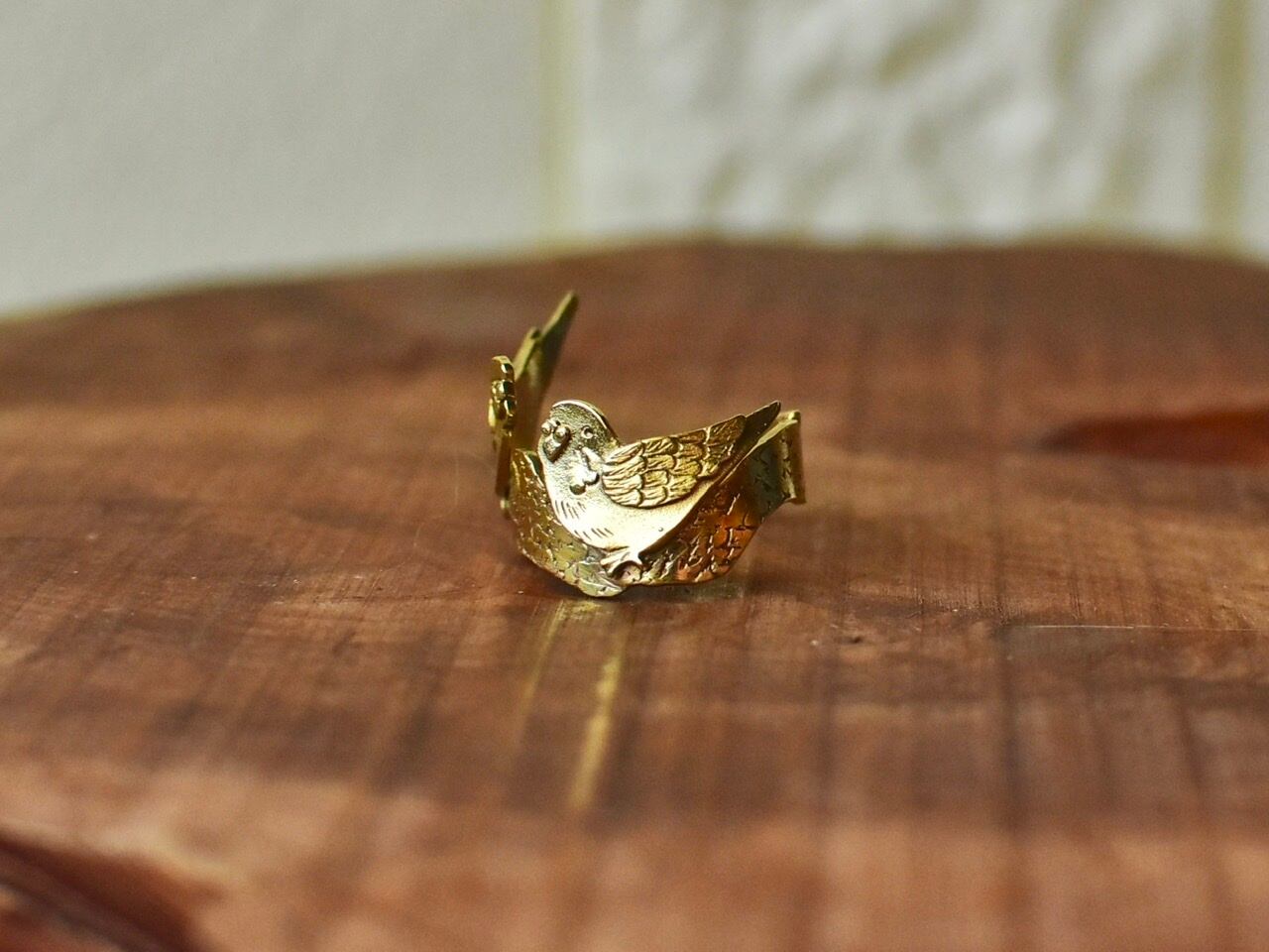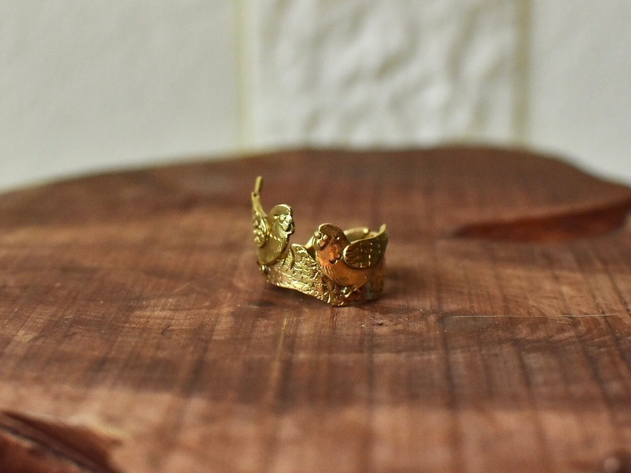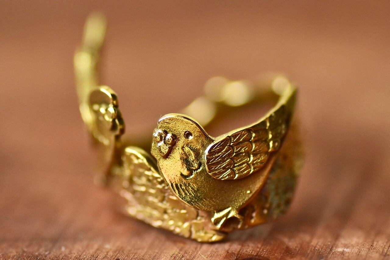 真鍮製のセキセイインコがモチーフのリングです