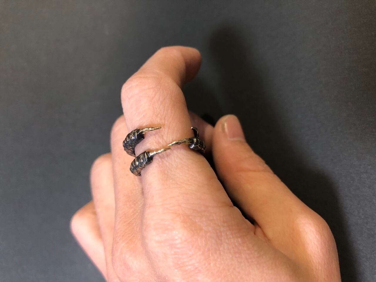ガッチリと掴んでくれる足、使っていくうちに愛着が湧いてくる不思議なリングです。