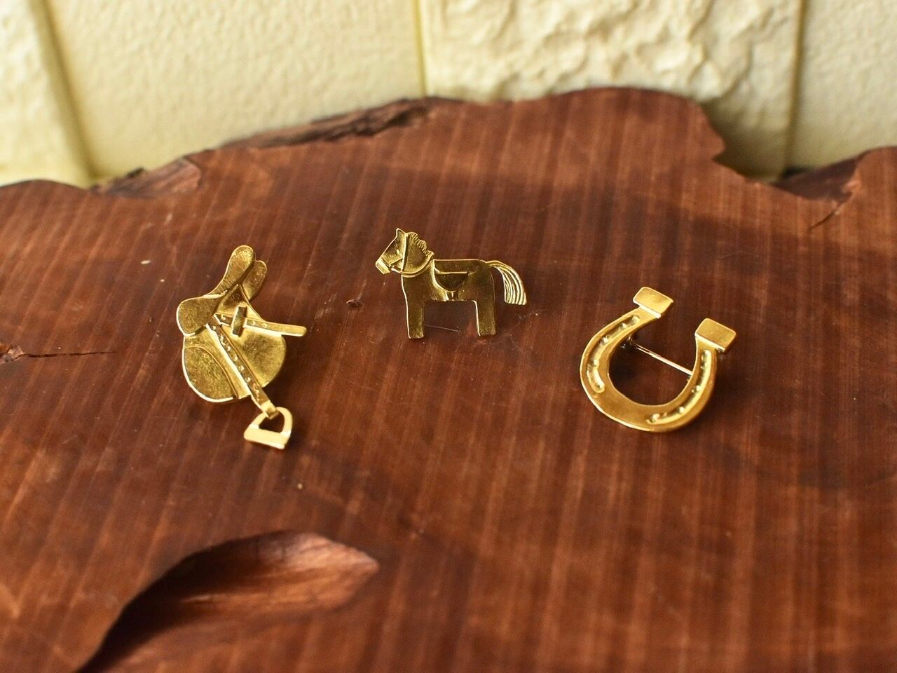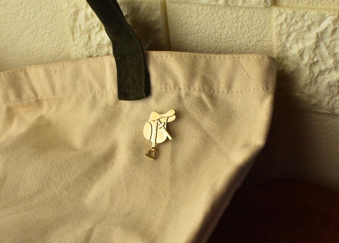 真鍮製の乗馬用の鞍モチーフのピンバッチです