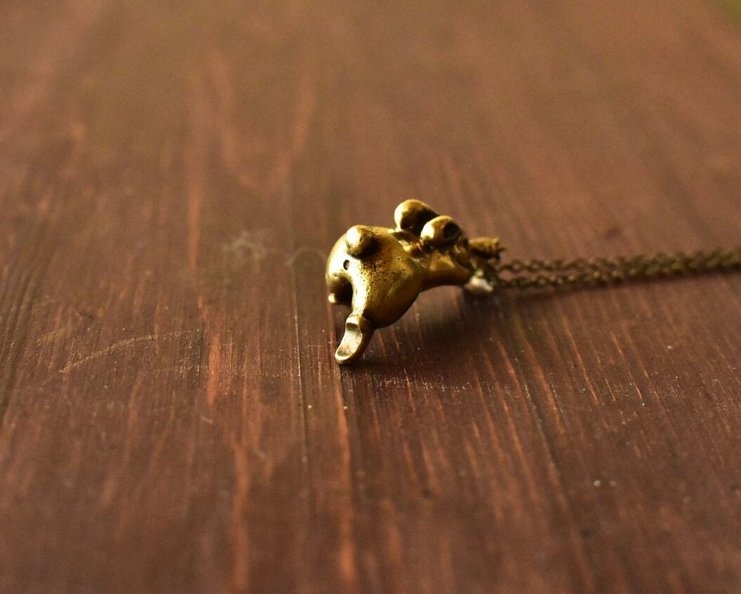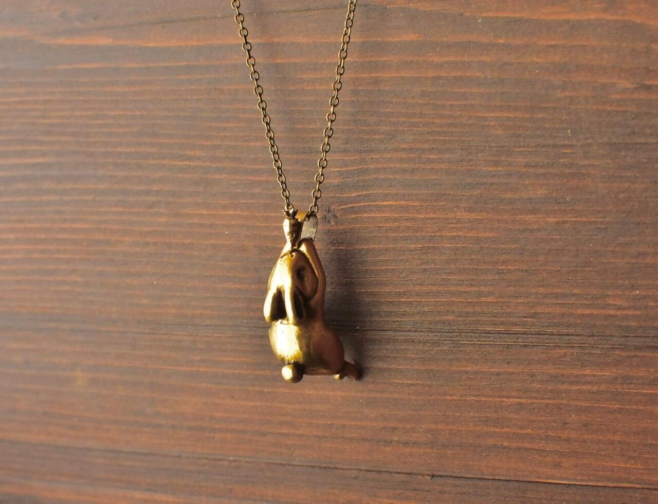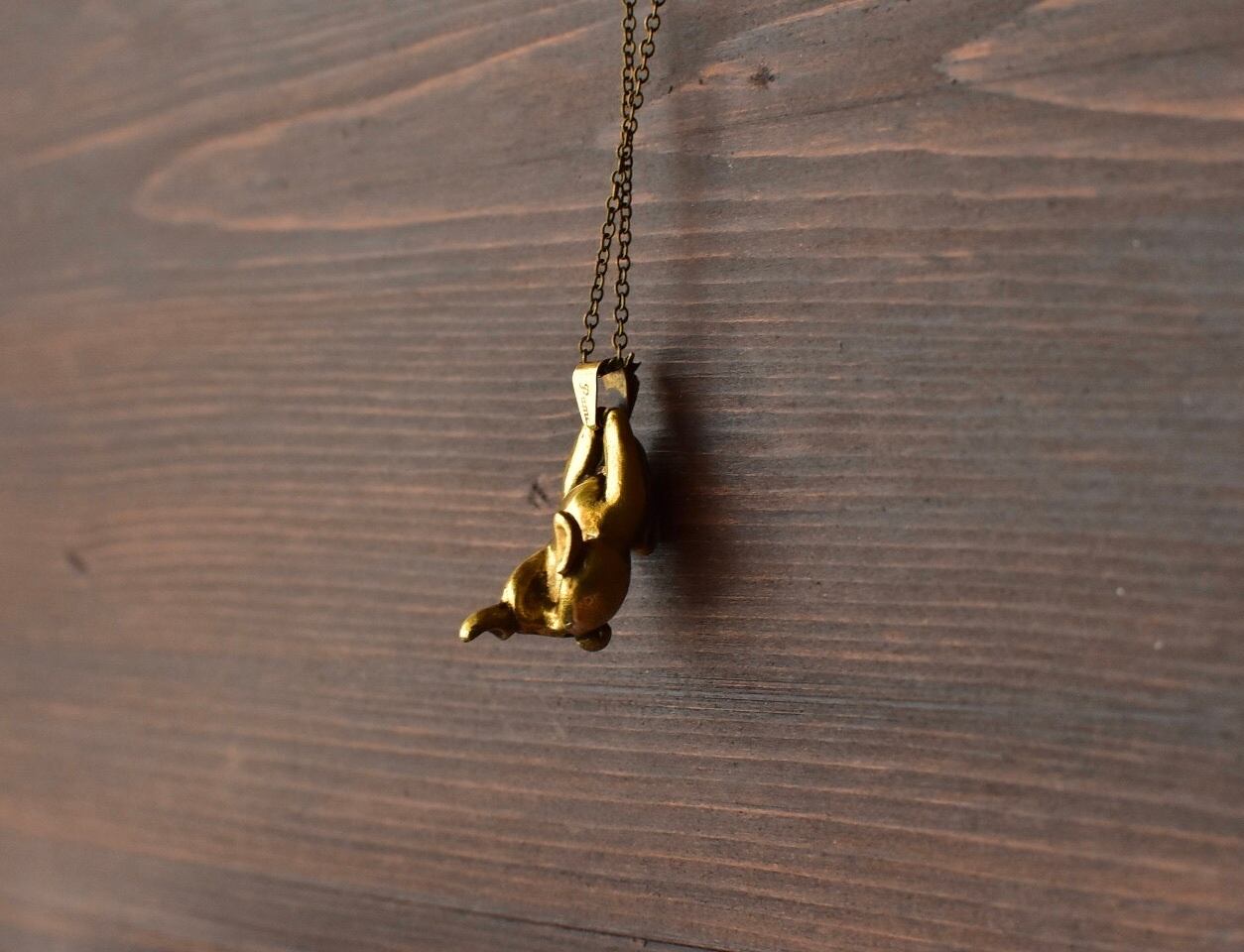 ぴょーんと跳ねてにんじんをキャッチしたウサギさんのネックレスです