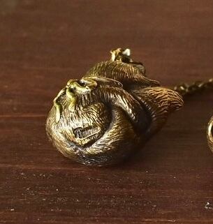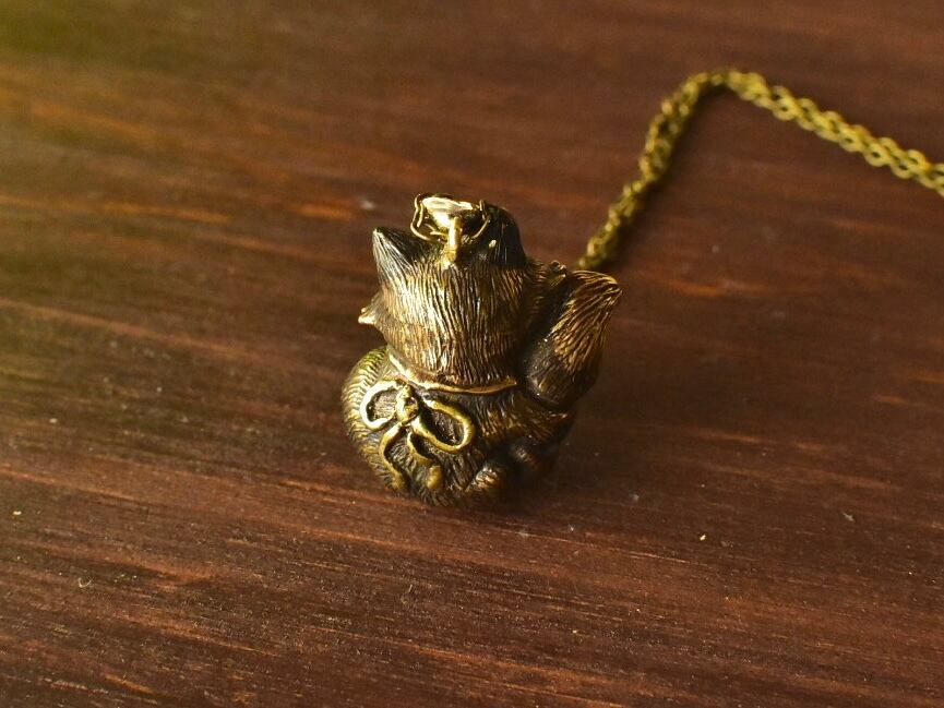 キツネさんご自慢のモフモフしっぽをむぎゅっと抱っこしているデザインのネックレスです